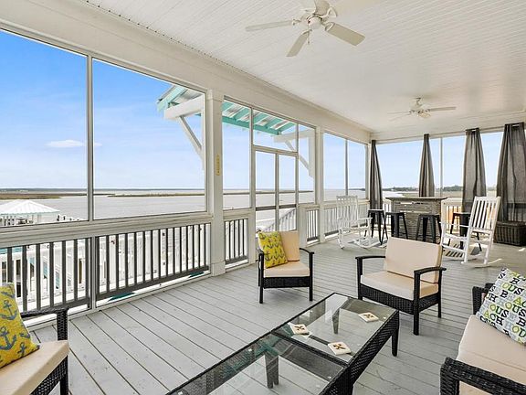 Pristine property with spectacular views of the Jourdan River! Custom built in 2016! 3 bedrooms and 4.5 bathrooms. Antique heart pine floors. Marble counters and new KitchenAid appliances. Custom window treatments. Double decked pier constructed of marine grade wood with large covered entertaining area, sun deck, and covered boathouse with 10,000 lb lift. Lighted fishing deck and fish cleaning station with water and electricity. 2 screened porches. Downstairs entertaining area with bar, storage, and full bath. Entire property has lifetime vinyl bulkhead. All windows and garage doors wind rated to 160 MPH. Working shutters. Alarm system.