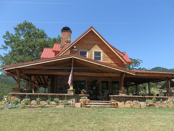 Beautiful ranch for sale in Southern Oregon. The main farmhouse is 3000 square feet with a full basement/exercise room, lodge-style quality construction with extensive use of reclaimed wood, brick and stone, full covered porch, and spectacular views in a peaceful, old-fashioned setting. The second residence is an 1800 square foot log home, with attached garage, 3 bedroom, 2 bath, in private setting approximately 1/2 mile from main house. Owner carry.