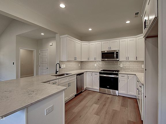 Orth Homes presents the Maple plan offering the convenience of one level living with 3 Bedrooms, 2 baths AND a 4 seasons sun room. This gorgeous home boasts an open floor plan with a split bedroom design and is conveniently located in Fishery Village subdivision in Erwin. You will be WOW'd the moment you walk in with the large, open living room with soaring vaulted ceilings and floor to ceiling custom fireplace. The kitchen is every chef's dream with an abundance of shaker style cabinetry (soft close doors and drawers), quartz countertops, tiled backsplash and stainless appliances (natural gas range). Off the dining area is the 4 seasons sunroom that is perfect for an additional living space, office area or reading nook with a cup of coffee in the morning. The primary suite will impress with its dual vanity sinks, accent wall, walk in shower, quartz countertops, and large closet with laminate shelving. For added privacy, the 2 additional bedrooms are located on the other side of the home and offer ample closet space. Another full bathroom, laundry room and 2 car garage complete the home. Relax in the evenings on the covered patio overlooking the large back yard. This home features maintenance free LVP flooring and tile thorughout. 1 year builder's warranty. Taxes to be assessed. All information herein deemed reliable but subject to buyers verification.