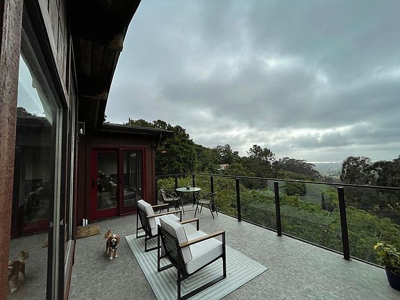 Looking for more access to nature? Space to garden? Have a desire to be be out of the city, but still very close? Welcome to the Berkeley Treehouse. Nestled in the quiet tree canopy just behind the Claremont Hotel, the Treehouse is close enough to "town" for a quick morning stroll to Fournee or Peet's for croissants and coffee, Rick and Anns' to pick up Sunday Brunch, or the Claremont for a game of tennis and pool-side drink. The Treehouse offers a tree-framed view of the GG Bridge, spectacular sunsets, spacious living and quiet respite. Located directly next to Garber park (a 15-acre nature preserve) the Treehouse has its own access to trails for easy walks with the dog, and multiple decks/outside areas to entertain, relax and play. At the flat end of a very low traffic dead end street, which provides opportunities for play. A few minutes from Rockridge BART as well as the Transbay AC Transit bus make for easy access to SF and other locales. Working from home is a pleasure, and ATT just finished routing fiber to the location. Key Features: * 2 Private decks w/barbecue * Recently restored/renovated * Chefs kitchen, updated appliances, spacious, open floorpan * Shared Laundry * Private parking This is the upstairs unit of an owner-occupied home. There is a common foyer, and shared laundry/utility room. Dedicated parking at street level. PLEASE NOTE: The Treehouse has a long stairway with about 75 stairs to access the house. Available Immediately Owner pays garbage. Gas water and electric split. One year lease term.