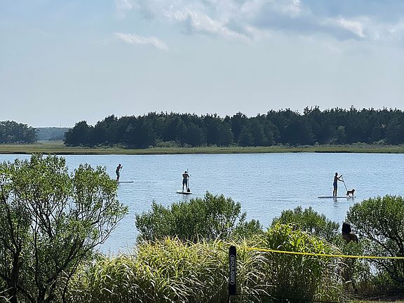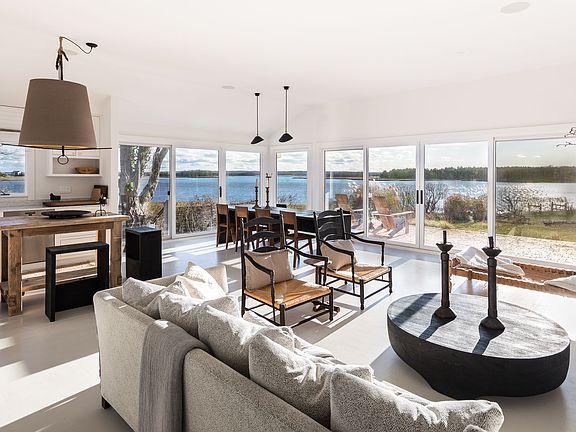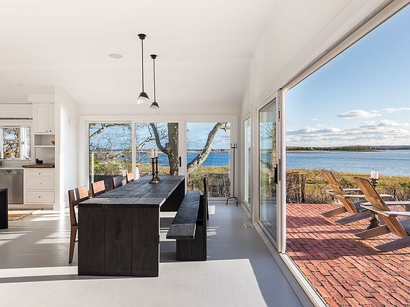 Rental Registration #: 23-1248 Panoramic views from both sides of the house in this beautifully renovated and stylish cottage. One side of the house has water views of Accabonac Harbor, the other side of the house has views of Gardiners Bay. Breathtaking sunsets are seen from living room, dining room ,kitchen and deck. This chic 3 bedroom 3 bath cottage has an open floor plan that leads out to a spacious patio for entertaining. There is a sandy beach in the back yard and deeded water access for launching kayaks, paddle boards and other small boats right from your back yard.