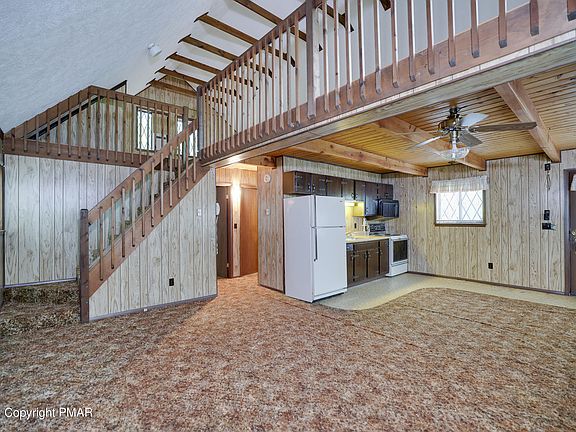 Do Not Wait to See This Value-Priced True Pocono Chalet On Private and Serene 1.35 Acre Property! Perched nicely back from the road, this property is located in the front section of Pocono Ranchlands just minutes from community amenities including pool and horseback riding and is a short drive to hiking, waterfalls and river fun at the Delaware Water Gap National Recreation Area. Enter via large side deck and step into classic and charming interior w vaulted ceilings, wood accents and exposed beams. Two bedrooms and full bath on main level for convenience and huge, show-stopping open loft as the perfect primary bedroom, play space or home office! Property does need some TLC and is being sold as-is. Homes with these features & this much land are rare - Do Not Delay, Call to Schedule Today!