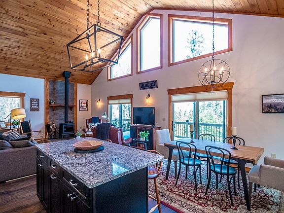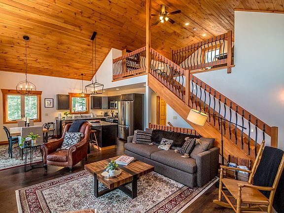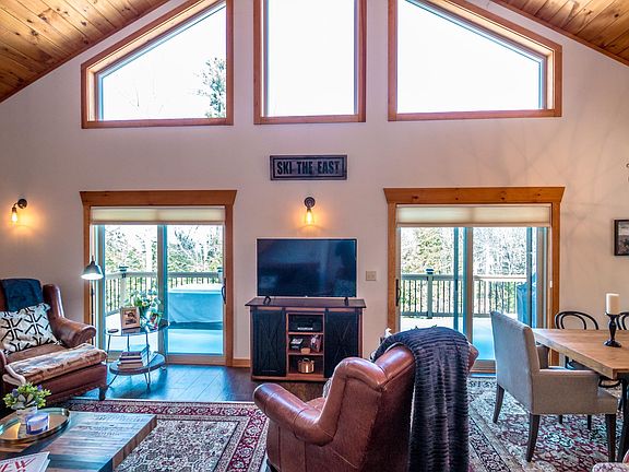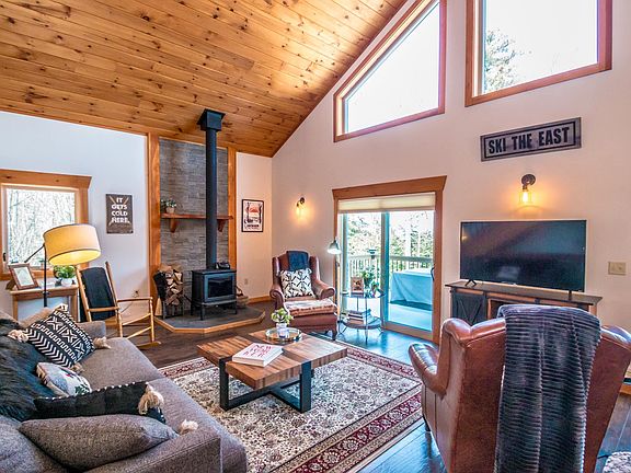 This sweet mountain chalet nestled in Rockhouse Mountain is waiting for you! This home is being offered partially furnished. Bright open floor plan with granite kitchen and tile baths, & high quality wood finishes. Warm up after a day on the slopes in front of the wood fireplace with a beautiful stone hearth. Large lower level family room for entertaining family and friends. Cedar siding with stone accents and a covered porch at the entry give that mountain cabin feel. Large view facing deck with solar light posts and an additional deck on the lower level so you can enjoy the sounds of nature. Tankless on demand hot water heater. This home also boasts a whole house Generac generator. The neighborhood includes an association beach and playground, fishing, canoeing, and ice skating on community ponds.