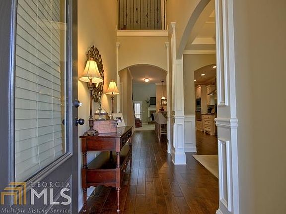 Priced $15k below Appraised Value!! GOLF COURSE LOT. Pristine Craftsman Home on Full Basement. Over-sized Master Retreat on Main w/Coffered Ceiling & Spa Bath featuring Sep Tile Shower, Jacuzzi Tub, His/Her Vanities. Sep Dining Room w/Coffered Ceiling, Gourmet Kitchen with Antique White Cabinets, SS Appliances, Granite & Counter Bar Seating. Two Story Family Room w/fireplace. Hand scraped hardwoods in foyer, dining & kitchen. Upstairs offers loft area, 4 Large Bedrooms & 2 Full Baths. Covered Deck with Stacked Stone Outdoor Fireplace. Unfinished basement for storage or expansion. Finest amenities Inc 3 pools, 100 acre lake, 8 tennis courts, playgrounds, clubhouse & golf course. Mins to Hospital & I-85