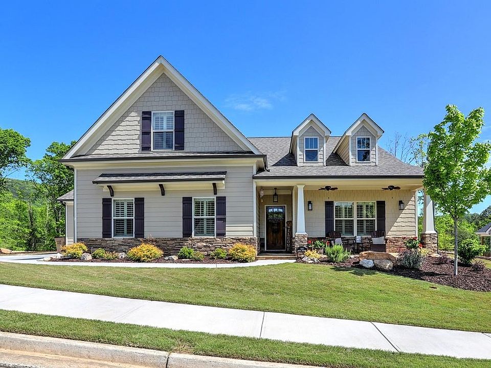 Lake Arrowhead. Live the life you've always dreamed of ! Less than 60 Minutes from Atlanta, this jewel of a community features a pristine 540 acre spring fed lake, 18 hole golf course, marina with boating and fishing, miles of hiking, clubhouse dining, pools, tennis courts, basketball and beach volleyball courts and much, much more. This nearly new craftsman style ranch was custom built in 2018 and features 3 bedrooms 3 full baths, an open concept floor plan, exquisite finishes, state of the art kitchen, a dining area suitable for large gatherings and a flex room which is currently used as a formal living room, but would make a great home office, library or man cave. 3 car attached garage. An enormous bedroom and full bath are located on the upper level as well as a heated and cooled storage room. Mountain views from every side and golf view from front porch. Competitively priced at $4390000! This is the Crepe Myrtle Plan! This is the most popular plan currently in the community and the model home just sold for $489,000! Although the model had some finished space in the basement, it did not have a third car garage and the square footage was smaller than this home! Don't let this opportunity pass you bye! Home is better than new with many upgrades the homeowner put in during construction and after! Call today to schedule a personalized tour.