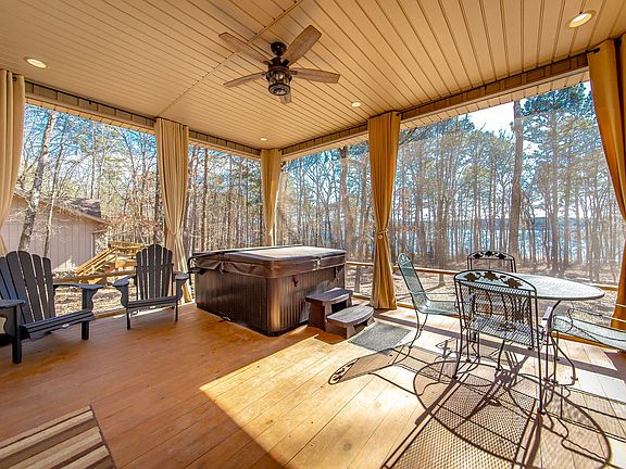 Welcome to your dream lakefront retreat in the Tannenbaum Community on the picturesque Greers Ferry Lake. This exceptional home combines the tranquility of nature w/ modern conveniences, offering an unparalleled lifestyle. Step inside to discover a haven that promises both relaxation & entertainment. Begin your day on the expansive screened-in back deck, savoring your morning coffee as the sun rises over the serene waters. After a day of lake adventures, unwind in your private hot tub, soaking in the breathtaking views that surround you. Designed for ease & convenience, this low-maintenance home features an oversized garage, perfect for storing your boat & vehicles. The fully furnished interior showcases a blend of comfort & style, with a kitchen that boasts elegant cherry cabinets with soft-close doors & gleaming luxury vinyl plank flooring throughout. Efficiency meets innovation with all-LED lighting, WiFi thermostats, two heat pumps, & a robust 200-amp service. Additionally, two unfinished rooms upstairs offer the potential to add additional living space. Convenience is at your door step with a nearby boat launch. When not on the lake enjoy a round of golf.