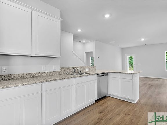 This two-story home features 5 bedrooms and 3.5 bathrooms. Laundry room is located on the first floor, just outside the two car garage. The kitchen connects an eating area to the family room, adjacent to the primary bedroom. The primary bathroom leads to a walk-in closet with linen closet and separate tub and shower. Each bedroom upstairs is equipped with a walk-in closet, and they share two more full bathrooms.