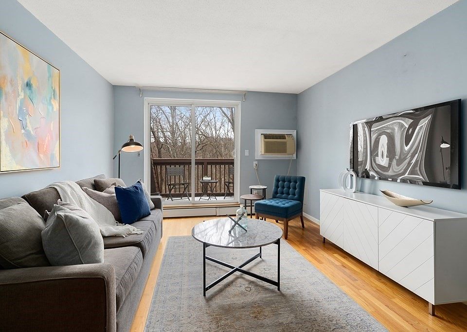 Why rent when you can own?!! Come home to beautiful views from this top floor condo at Chandler Pond Condominiums! This renovated 1bed/1bath features a fabulous layout and an updated kitchen w/cherry cabinets, granite counters, stainless steel appliances and tile back-splash. Living space & bedroom are both beautifully sunlit with sliding doors directly out to your own private sprawling balcony overlooking tall trees and the pond. There are hardwood floors throughout and an updated bath. Enjoy cooling off all summer long in the outdoor pool and relaxing walks around the lush grounds at Chandler Pond. There is assigned parking for 1 car and ample guest spaces, unit comes with one visitors pass. Condo fee includes heat & hot water, plus there is laundry in the building and an additional storage space. Easy access to bus routes, restaurants, shopping and cafes in Brighton Center, close to the Mass Pike, and the Green B Line just a mile away. Don't miss this fabulous starter condo!