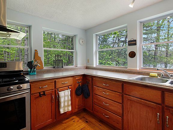 Kilton Pond has a big lake feel with little pond charm! This year-round rambler on 1.5 acres with 150 feet of water frontage has so many options - and built in 1996 - lots of life left! Having 3 bedrooms over 2 floors, 2 full baths, large bright living spaces and a kitchen that drinks in the views. You'll love the low maintenance features like a covered porch, metal roof and covered walkway. There is a small 1 bay garage used primarily for storage of toys. The lower level is set up as an accessory dwelling unit and there is a sauna on the main level. Showings begin at the Open House on Friday June 2nd from 4-7pm.