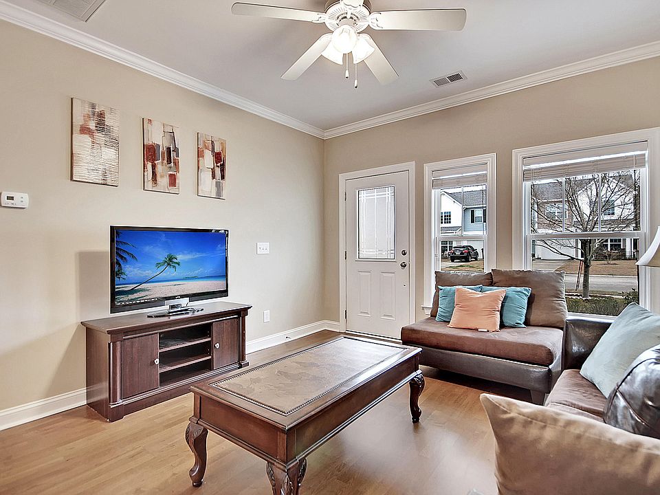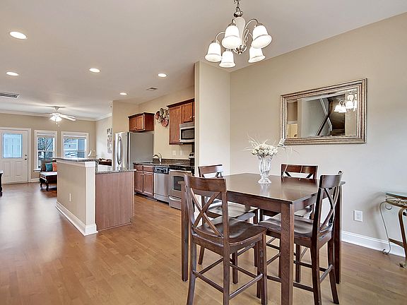 Conveniently located in Goose Creek, maintenance-free living awaits you in this gorgeous, move-in ready townhome! The open floorplan boasts beautiful hardwood floors, crown molding, baseboard molding, a granite kitchen with a breakfast bar & SS appliances, & a spacious eating area that leads to the back patio. The upstairs layout is equally impressive with a dual master, both with walk-in closets & en-suite full baths. Master suite #1 has a tray ceiling & a dual vanity & walk-in shower in the bathroom. Master #2 has a sitting area with three walls of windows that let the natural light pour in. The garage has an epoxy finished flooring, & the long driveway provides room for two more vehicles to park off street. This home shows beautifully & could be the perfect home or investment for you!