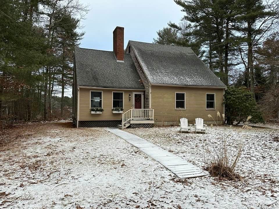 OPEN HOUSE CANCELLED-accepted offer! This waterfront home has 112' of private shoreline on Lower Chandler Pond w/commanding views, beautiful landscape & a true sense of privacy. Enjoy kayaking, fishing & nature at its best from your own home. When you enter this 4 bdrm home, the living rm welcomes you w/a lg brick free-standing fireplace, cathedral ceilings plus a stained-glass window. The dining rm & open kitchen span the entire back of the house. Sliding doors open to a deck overlooking the level backyard and pond. A large bdrm (currently used as a family/tv room), full bathroom w/shower & den complete the first floor. The second floor consists of a huge primary, ensuite bdrm w/picture window overlooking the pond & two add'l bdrms. The finished third floor bonus rm is currently used as a bdrm but is perfect for an office / playroom. The flexible floorplan allows for possible first floor living. This is your dream home in the making; windows/trim are original.