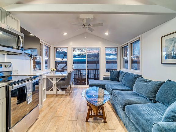 Welcome to Eastern Shores, a community of shared waterfront access condos on Lake Winnipesaukee. This particular condo enjoys the incredible advantage of being positioned right at the water's edge, granting you instant access to your deck for breathtaking sunset views. Recently renovated in 2020, it boasts modern features such as stainless steel appliances, quartz countertops, and a mix of hardwood and vinyl flooring. As a part of this association, you'll have access to not one but two private sandy walk-in beaches, convenient jet ski lift space, and the strong possibility of securing a mooring or dock based on seniority. The community offers nine docks and thirteen moorings, with allocations determined annually among the twenty-four units. This property is versatile – enjoy it in its current state or explore the potential for vertical expansion, just as many others in the community have done. While it may be seasonal due to the winter water shut-off, you can enjoy it year-round thanks to the heated recreation room complete with a bathroom that has a shower, and coin-op laundry. A quick ten-minute drive will bring you to the Bank of NH Pavilion for concerts, a variety of restaurants, and Weirs Beach. Moreover, the convenience of strolling across the street to the recently revitalized Village at Paugus Bay offers an enticing array of dining establishments and shops for your pleasure. Please note that short-term rentals are not permitted.