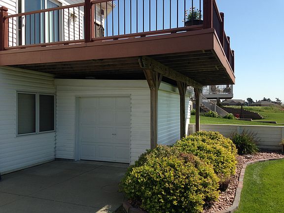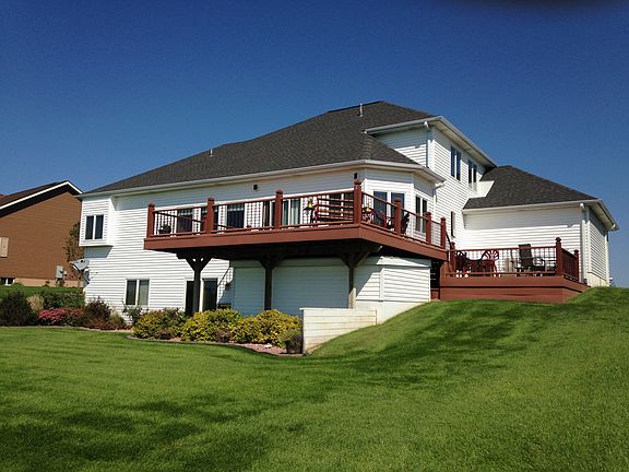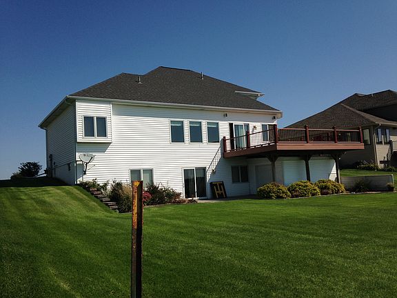 2 Story home with a 3 car attached garage. There is a master bedroom with a master bath (whirlpool tub, shower, walk-in closet). Main level supports a large great room, formal dining area, and kitchen with lots of cabinet space and a walk-in pantry. A double oven, range top, microwave are included. Just off the kitchen you can walk onto a massive double tiered deck that supports an awesome view. The upper level has 3 bedrooms, a full bath, and an additional room that can be used for an office or recreation room. The basement is fully finished with a walk-out. The basement is wide open with a built in entertainment center and gas fireplace. It has a wet bar and a bathroom with a shower. There is an additional room that can be used for an office or rec room in the basement also. The basement also supports a utility room and storm shelter. This is a spacious home that has been well maintained.