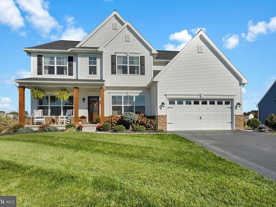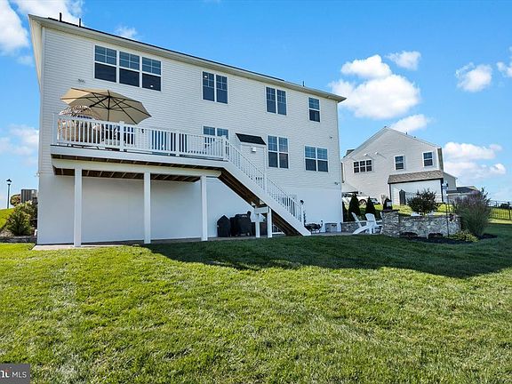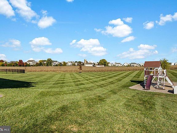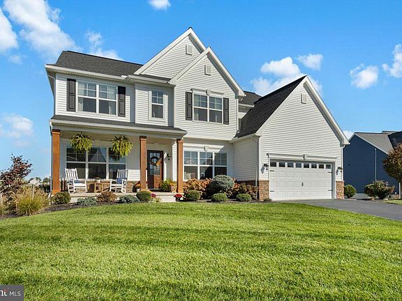 Located in South Lebanon’s coveted Lindcrest Community. This stunning custom built home exudes modern farmhouse energy and backs up to farmland providing the perfect mix of privacy and neighborhood charm. The home greets its visitors with its meticulously landscaped lawn and greenery. Beautiful stained wood columns complement the hardwood front door. Upon entering the luxury vinyl plank flooring paves its way through the spacious 9’ first floor ceilings and into the foyer. The well adorned formal dining room boasts a board and batten accent wall along with a custom built-in bench complete with cabinetry sitting beneath the extra wide front windows. Across from it is the formal living room or office with its shiplap accent wall. The expansive 2-story great room showcases the natural gas fireplace, stone hearth, rustic wood mantel, and shiplap to ceiling accent. Flowing directly into the kitchen, the inviting spalted maple beams along the ceiling wrap the kitchen in country charm. The beautiful quartz island with seating area is matched with quartz countertops and extra tall cabinetry. Gourmet stainless steel appliances, along with the wine and beverage refrigerator in the island, provide all the tools to host gatherings and family in the heart of your new home. The mudroom includes custom built-in cubbies and an extra wide double door pantry to make storage a sinch. The first floor is completed by an extra-large playroom/office and half bath. Another farmhouse sink in the first-floor half bath provides continuity of the charm from the kitchen. With built-in blinds, the sliding glass doors from the kitchen invite you to the oversized composite deck with vinyl railings, complete with a gate. Unmatched views over your nearly ¾ acre lot display the beauty of the countryside. Down the deck stairs, you will notice the Azek fascia adorning the deck and wood columns before you are greeted by your 900 sq. ft. stamped concrete patio, wood-burning firepit centerpiece, a custom-built retaining wall with built-in lighting, your backyard experience just got upgraded. Moving back inside and heading to the 2nd floor, your path is paved with extra-wide hardwood oak stairs and white risers onto the luxurious and comfortable carpet upstairs. The hallway is upgraded with custom built board and batten and lighting above throughout. This floor includes an expansive primary bedroom with recessed lighting, custom closet and exquisite on suite bathroom featuring quartz countertops, a soaking tub, a walk-in shower, and built-in vanity. Connected to the primary bath is the custom primary closet complete with an expansion over the garage, built-in dressers, custom installed LED lighting, and his/her sides. Completing this floor is 3 bedrooms, laundry room and a full bath. As an added bonus there is an expansive 1700 sq. ft basement with 9ft ceilings, rough-in plumbing for a future full bath and provides for endless possibilities. It also includes a 450 sq. ft. home gym with Regupol rubber flooring and recessed lighting. Double sliding doors allow access from the basement directly to the stamped concrete patio.