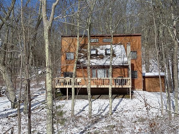 Location, Location, Location! This three bedroom, two full bathroom home in Hemlock Farms is near many of amenities offered in this gated community. Choose from fishing, reading, walking, exercising, arts and crafts, swimming, tennis, paddle ball, and sledding all close by. This home is the perfect getaway from the hustle and bustle. Enjoy this bright and airy home that features a bedroom on the main level, a full bathroom with access to the bedroom and kitchen area on the main level, eat-in kitchen with lots of natural light, a laundry closet, a living area with a wood burning stove, and a four-season bonus room to view nature in the backyard all located on the main level. Staircase takes you up to two additional bedrooms with a shared full bathroom and a spacious loft for a bonus area.