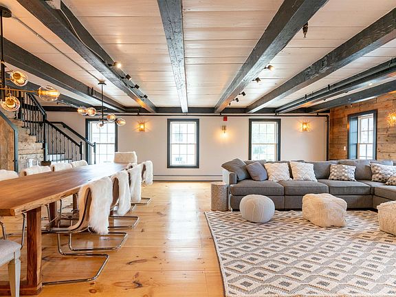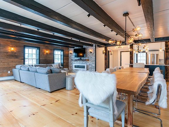 Wake to the chimes of the classic New England Main Street white church as the historic Stowe Village rises for the day. A rare opportunity to own a five-bedroom fully renovated condo in the heart of Stowe. This classic anchor of Main Street has plenty of Vermont charm, but with all the modern luxuries. As you enter the unit you’re met with an expansive open living area that is ready for those who want to entertain. The open floor plan takes into account the historic nature of the building, combining hand-hewn beams, brick and barn board walls, and wide plank wood floors. These features are all enhanced by the perfect decor, including a handcrafted table for 12. The kitchen is perfectly situated to not miss a beat and offers bar seating for those who like to chat while watching the chef at work. You’ll find a spa-like bath with laundry on this level. Move to the second level where you’ll find two on-suite bedrooms and three additional rooms with a shared bathroom. The wood flooring and barn board walls continue to this level. Every bathroom within the unit is a marvel unto itself, with stone and glass working in tandem. This iconic downtown location offers access to all the great restaurants Stowe Village has to offer. Want to hit the Rec. Path or head off on your mt. bike, it’s a breeze with access across the street and beyond. Don’t feel like driving to Stowe Mt. Resort, hop on the free shuttle just up the block. A truly unique opportunity in Stowe!