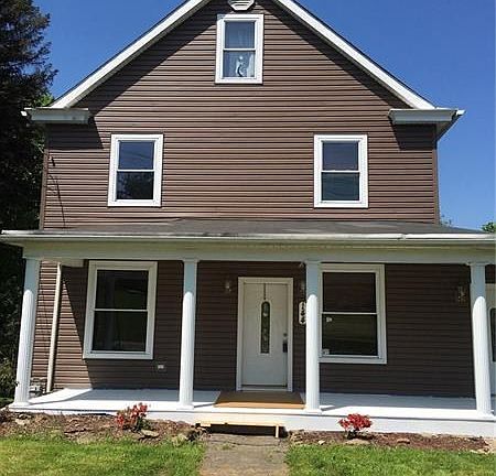 Spacious living with open floor plan for this updated home, sliding door from dining room onto rear deck, full front porch, beautiful hard wood floors, newer siding, roof, furnace, air, appliances, water heater, updated kitchen and bath, third floor is very usable for living area if heat installed-nicely finished, lots of closet space. Seller putting finishing touches on painting and cleaning-please excuse the mess, will have pictures once completed, across the street from playground and ball field, walk to store, post office, and banking. Lots of original, unpainted woodwork, pocket doors, steps go up from living room and kitchen.
