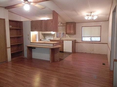 Finish what we started. This 3/2 manufactured home has newer laminate floors, bathroom fixtures and appliances. The rest is up to you. Spacious split floor plan with living area, dining area and kitchen. As-is. Handyman special.