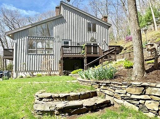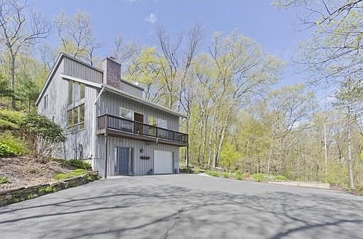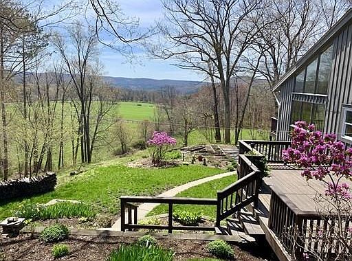 This remodeled contemporary lifestyle home is surrounded w/nearly 3 acres of privacy, nature, and features breathtaking views! Beautiful year round!Drive up your private driveway and take it all in! Greatroom features vaulted ceiling, tall brick fireplace surrounded by 2nd floor balcony, stunning windows for light, sliding doors to outdoor balcony! Sit and enjoy your coffee while admiring the scenic views! Greatroom also has a dining area and open to the kitchen,(kitchen remodeled in 2015 apo) and features stainless appliances, striking island w/wood top, granite countertops, wood stove, sitting area, sliders to the deck! Gorgeous wood floors throughout! 1st floor also has the master bedroom w/knotty pine floors and next to first floor full bathroom. Second floor has two other bedrooms and full bath. Lower basement level has an entrance w/very spacious mud room w/built ins to hang your coats and footwear! Newer roof within 2 years apo. This spectacular home will be top on your list!