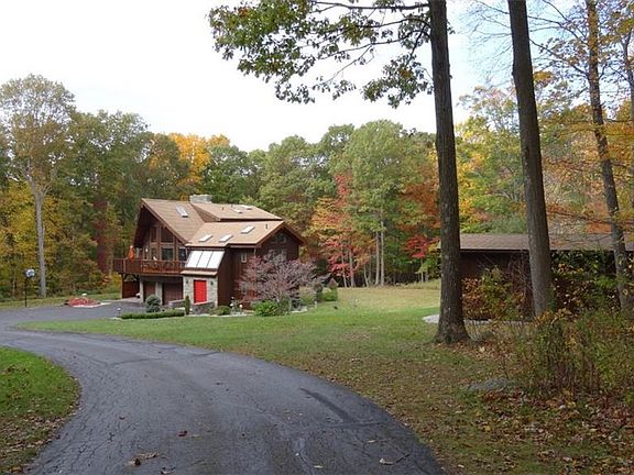 You will feel like you are on vacation year round in this custom built post and beam home situated on just over 26 acres. The property has frontage on a sparkling pond with beach area for fishing, swimming, kayaking or ice skating. You can enjoy just about any hobby on this great property. There is also a possibility to subdivide. Home is constructed with gluelam post and beam. Interior features douglas fir and yellow pine. Steamed arches in the sun room. Kitchen ceilings are 2x6 tongue and groove over sheetrock. Walls of windows and skylights gives you great passive solar heat. The fireplace and exterior stone were quarried in CT. Relax in peace on this beautiful wrap around cedar deck with mahogany railings. Front doors and garage doors are also mahogany. Pella windows and skylights. So whether you like to be in a secluded natural setting or invite everyone over for any season to a warm open floor plan or outdoor parties, this home is it. Interior photos next week.