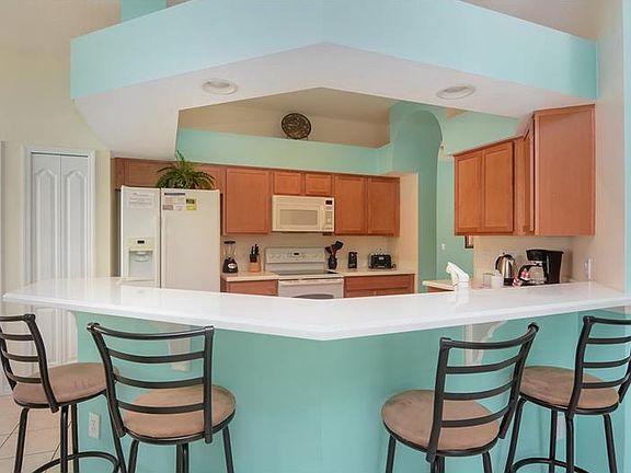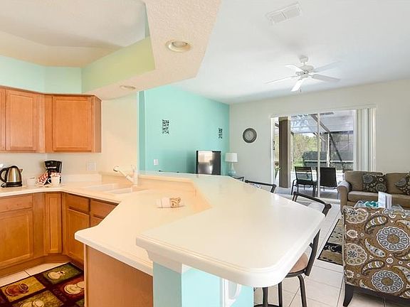 Fully furnished home in the very popular Shire section of West Haven. Property has been well maintained, and is attractively furnished to attract renters. The community features a gated entry, community clubhouse and pool, play area, tennis courts, exercise room and game room. The back pool and spa area offers privacy as it mainly backs to conservation. The master bedroom upstairs has a house wide balcony, all screen enclosed. The five generous bedrooms are all themed differently and have flat screen TVs. The first floor has a full bedroom with an en suite bathroom. The master bedroom is massive and has a generous master bathroom. The garage has a games room, for relaxing after a day at the Orlando attractions. West Haven is in the fast growing area of Championsgate, and is near I-4 for easy access to either the Florida west coast beaches or Orlando's attractions.