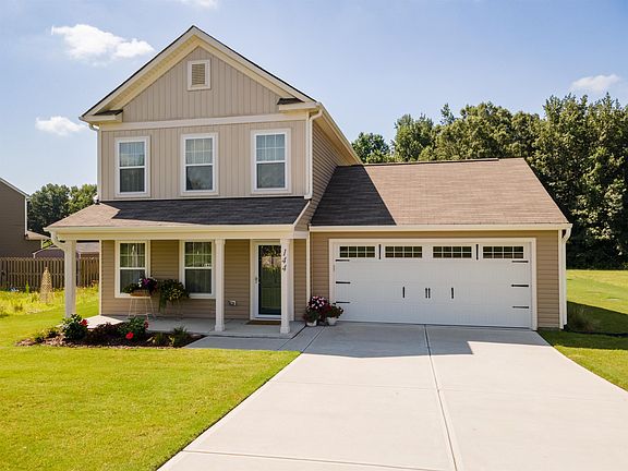 Charming, well cared for home built in 2020 in a cozy neighborhood just minutes from downtown Angier on over 1/2 an acre of land! First floor is an entertainer's dream with an open floor plan, kitchen with white cabinets, granite countertops, updated lighting and large kitchen island plus a dedicated dining room, family room with coffered ceiling, half bath and laundry. The second floor hosts the primary suite in the rear of the house and two, good-sized bedrooms with an additional full bathroom. The seller added a concrete patio with gazebo to the large backyard that stretches into the woods behind. A butterfly garden and other custom plantings encircle the house. An updated style of country living!