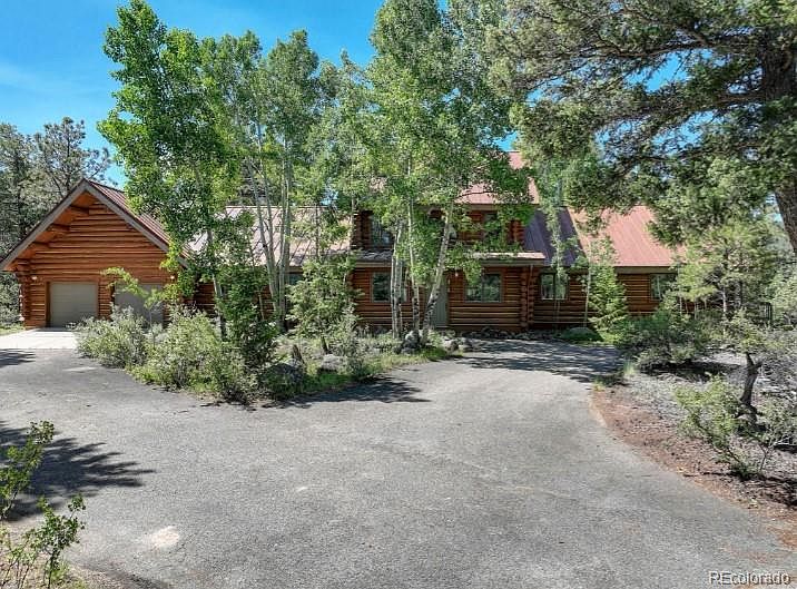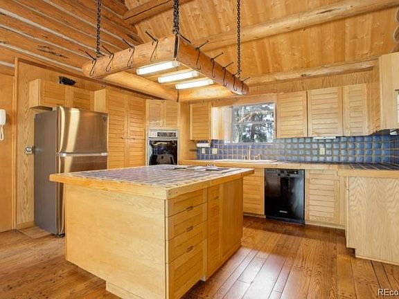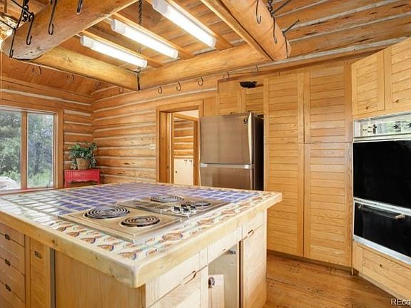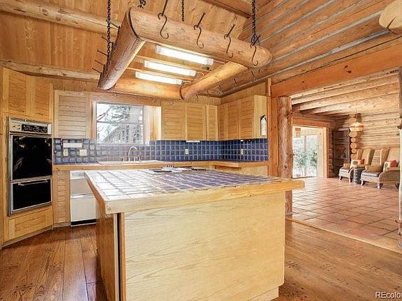 CUSTOM LOG HOME ON 10.58 ACRES IN WOODSIDE FOR SALE! 144 Nova Drive, Pine. CO 80470. Escape to your serene, custom, Western Heritage Log Company home (*not your typical log home) with a metal roof. The home is nestled on 10-1/2 secluded acres, surrounded by trees, striking rock outcroppings and beautiful mountain and forest views in the desirable Woodside neighborhood in Pine Junction off 285, less than an hour from downtown Denver. This 1-1/2 story, 2,730 sf home has four bedrooms (one currently used as a utility room would make an office with a beautiful view), with the primary bedroom with a deck on the first floor and two bathrooms (one upstairs). It boasts a 1-1/2 story, river rock fireplace with a Fisher stove, Saltillo tile and wood on most of the floors, solid oak kitchen cabinets, an open loft with a fully windowed sunroom with stairs to the lower, 24'x30' deck, an oversize two-car garage with a storage loft, plenty of parking, whole-house vacuum, Anderson wood casement dual pane windows, first floor 8'x22' solarium and a 750 sf poured concrete basement that would be great for storage or a workshop. With a few updates, you can experience a unique, immersive retreat in your own private haven. (*Everything is made using lodgepole pines that were hand-peeled and then the entire structure assembled, notched and marked before being shipped. All of the logs are forced-fire dried to guarantee uniform dryness. When the structure is assembled for the first time, no windows or doors are cut. This is done at the site. This differs from a “kit” where milled logs which are peeled by machine, pre-cut to various stand lengths and notched before assembly. One log fits on any other log. Doorways and windows are formed by using logs of a particular length.)