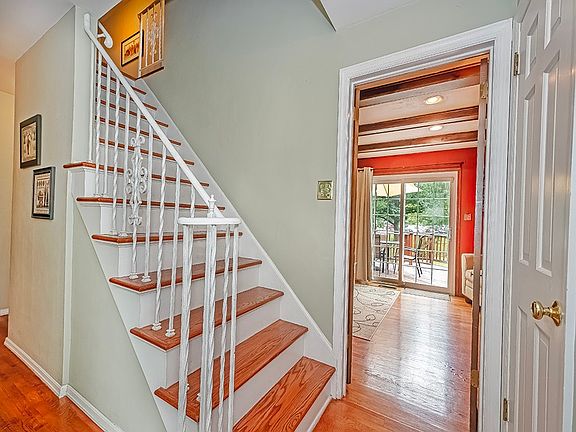 MASSIVE CURB APPEAL! Classic 2 story Colonial offers all of the space you need! A Covered Front Porch welcomes you into the foyer entry. Hardwood flooring throughout! Spacious Living Room has neutral carpet over hardwood opens to the Formal Dining Room. The Kitchen with painted white cabinets is fully equipped & boasts enough room for a table & chairs. The Family Room has beamed ceilings, Log Burning Fireplace & Hardwood Floors with doors that open to a large wood deck overlooking the green lush yard. 2nd Floor has a Master Suite with impressively updated Bath with granite counters & ceramic tile walk in shower and abundant closet space, 3 Guest Bedrooms All Larger than you'd expect with generous closets, a Den/Office nook is a must for todays "work at home" lifestyle! The updated Hall Bath is gorgeous with granite counter over white cabinetry. The Lower Level is partially finished as a gameroom & has space for hobbies, fitness & storage. Walk out from basement to the beautiful yard.