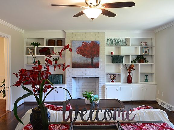 All Brick Ranch renovated w/tons of upgrades located in Mooresville w/NO HOA! This charming 3 bdrm home exudes so much Character w/beautiful rustic wood floors thru-out featuring a magnificent built-in bookcase as you enter thru stain glass door, Huge eat-in Kitchen w/breakfast bar & new SS appliances, Large Master w/sitting area, 2 wood burning fireplaces + a massive fenced backyard for outdoor fun. You will love the openness this home has to offer w/tons of natural light! You have to see it!
