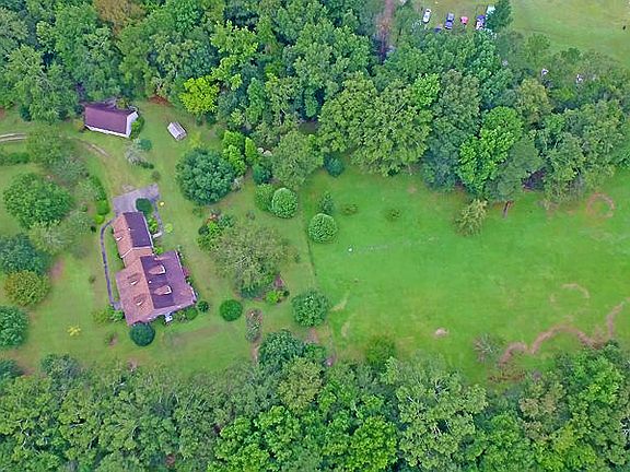 Southern Living Custom built brick home on 8.93 acre's of land. Living/study, spacious dining 16'x17' with Bay window, wood floor, large family room for all your entertaining has wood burning fireplace, built in bookcases wired 6 speakers and wall of windows and doors to enjoy the beautiful landscaped yard. Eat in kitchen with cathedral ceilings, brick wall, wall oven and hard surface counter top. Brick arches to dining and family rooms. Master bedroom downstairs has Bay window. Master bath has separate shower and jetted tub. Two closets. Two bedrooms and full bath upstairs. Eat in kitchen has brick wall, Cathedral ceiling, hard surface counter top, Bosch dishwasher, wall oven, trash compactor. 10 ft ceilings down, 9 up. Large laundry with sink. Full bath off 2 car garage.