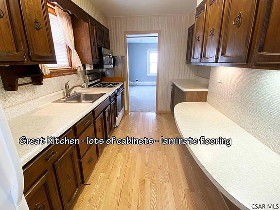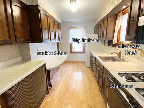 Easy one floor living in this 2 Bedroom vinyl sided Ranch home w/ a 2 car garage. Living Room carpet installed Jan. 2020. Living Room & 1 Bedroom were just painted. Great Kitchen has lots of cabinets and counter space, laminate floor, breakfast bar - and the refrigerator, gas range & microwave hood are included.There is a heated breezeway that could be used as a mudroom, dining room, or den. Hardwood in the 2 bedrooms. Nice bath with oak vanity and ceramic tile wainscoting and shower surround. Lower Level has a Laundry with a dryer & utility sink, a furnace room with a toilet & workbench, and a carpeted rec room with storage closets. 2 car garage - 1 automatic opener. Plus a nice level back yard w/ a great view! Call soon to check it out!