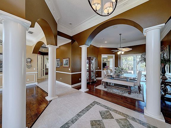 'CURRENTLY UNDER CONTRACT, SELLER ACCEPTING BACKUP OFFERS' Selling Fully Furnished! Vaulted ceilings throughout (12', 14', 17' Foyer and 10' in the garage) and 8ft doors throughout! This luxury home surrounds a newly resurfaced pool with access and views from the formal dining room, living room and master bath. A covered patio with a 10ft privacy fence surrounds this tropical Oasis of a backyard. Split floor plan. Beautiful master bedroom and bath. Textured tile & hardwood flooring. (carpet in bedrooms) Large beautiful kitchen and breakfast nook with lots of cabinets. Large kitchen island. Corian counter tops with two Built in wine racks. This home would be great for the family that likes to entertain or just quiet evenings at home.