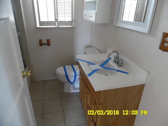 Stucco exterior, tile roof, large patio in backyard, some covered storage area. Lots of potential.