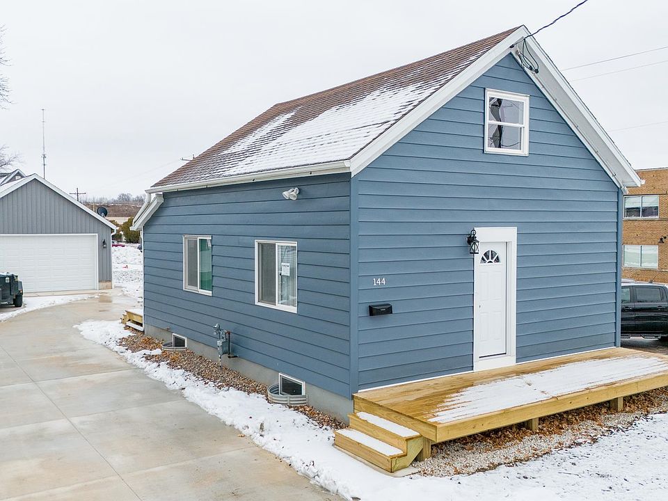 Here is a find! Great starter home in Brillion. This home features 3 bedrooms and many updates! These updates include flooring, new poured foundation w/ egress window & stubbed for future bathroom, Concrete driveway, Electric, Plumbing, first floor laundry, Garage door & siding, furnace, central air, front & back decks, updated bathroom, new exterior basement entrance, and refinished kitchen cabinets. Don't let this awesome renovation slip away!