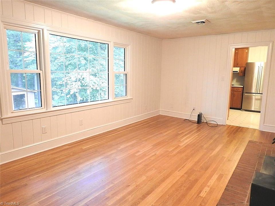 More updates are on going, so stay tuned. Roomy and bright brick ranch at the end of a cul-de-sac. Many updates completed with all walls freshly painted, Some new light fixtures, new dishwasher and new refrigerator, NEW ROOF, new water heater. The home has replacement windows and beautiful refinished real hardwood floors. New blinds, new interior doors and knobs, 3 bedrooms and 2 baths with full basement. 2 fireplaces, one in den with a wood stove and the other in the basement. Solid wood kitchen cabinets. Attached carport and 1.6 acres in town. This is a solid home with nearby hiking trails, river, state parks and wineries. Approximately $139 per square ft. Excellent value.