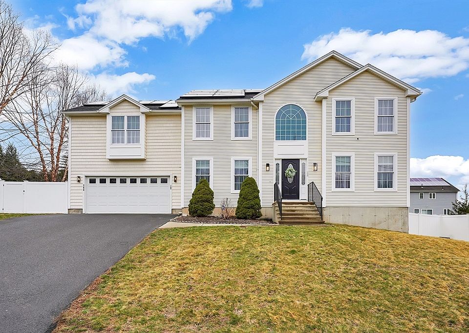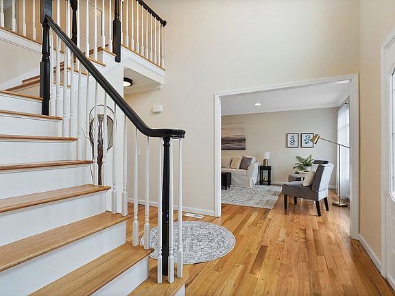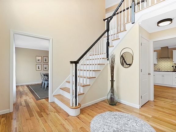 This beautiful 5 bed/3.5 bath Colonial offers ample space for comfortable living. Enter to an inviting two-story foyer with a modern feel. The open floor plan with hardwood floors throughout is perfect for daily living or entertaining. The living room features a gas fireplace and leads to the kitchen, with large island, granite countertops and stainless-steel appliances. More formal dining can occur in the separate dining room or utilize the space for a home office or den. Crown molding and recessed lighting add a touch of elegance to the main level. Upstairs there are 4 bedrooms and a hall bathroom with modern finishes. The primary bedroom suite is the large 5th bedroom, with a walk-in closet and spacious bathroom. The finished basement provides additional space and a 3rd full bathroom. Outside, the large deck overlooks the expansive lot and provides a quiet sanctuary, or a great space for gatherings. With gas heat and central air, there’s nothing left to do but move in!