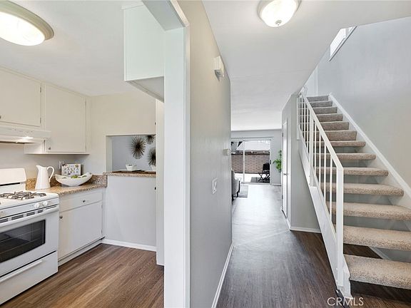 You won't want to miss this Move-In Ready condominium located in Placentia’s Broadmoor Exclusives! This adorable home features two bedrooms and a full bathroom upstairs, with an additional half bath for guests located on the main level! Upon entering your new home, you'll notice the stylish wood laminate flooring, retextured ceilings, and freshly painted walls throughout really make this home pop! Enjoy a nice cup of coffee at the cozy breakfast bar, or head outside to your private, well-sized patio backyard, perfect for hosting guests. Upstairs, you'll discover brand new carpeting throughout, as well as two comfortably sized bedrooms and the full bathroom. With your new home, you'll also receive a one-car garage complete with a storage closet, as well as additional parking spots for residents (including your own parking space directly in front of your garage). The Broadmoor Exclusives community itself offers a range of amenities, including a swimming pool, well-maintained grounds, secured laundry rooms (located about 20 feet from your front door), as well as community paid trash, water, and even hot water! You will be conveniently located near shopping, dining, the 57 & 91