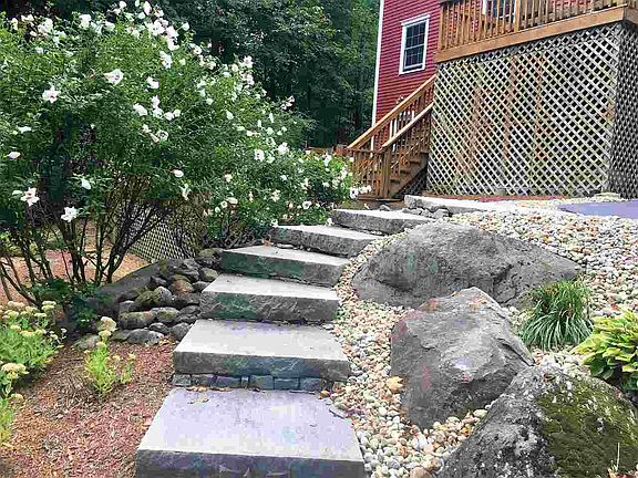 Welcome in, this charming Colonial awaits you! Lovingly cared for by the original owners, the home is in truly impeccable condition, with thoughtful finishes and low maintenance living. Beautiful oak floors are throughout the home, with the exception of tile in the kitchen and baths. Quartz counters and maple cabinetry beautify the kitchen, with generous work spaces and ample storage. The home has open, flowing spaces, flexibility of room use, and glowing natural light through each window. A wood burning fireplace in the living room awaits as autumn makes her arrival. Newly updated bathrooms with handsome vanities, stone and tile work, include well chosen features such as a deep tub and rain shower head. The bedrooms are all on the second level, with the glowing oak floors continuing upstairs. The generous master runs from the front to back of the home, with large closets, private views over the lawns. The unfinished, walkout lower level has potential to be finished space. A generator hook up is at your ready. Outside, the attention to detail continues, with green lawns, an irrigation system, mature flowering trees, bushes, and gardens. A terraced rear yard further offers space for entertaining or relaxing. The decks... a three season delight for relaxing, dining, or a gathering of friends and family. Hidden away additional storage under one deck cleverly hides outdoor tools and rubbish cans. This property is truly ready in all manner of ways to be enjoyed by a new owner.