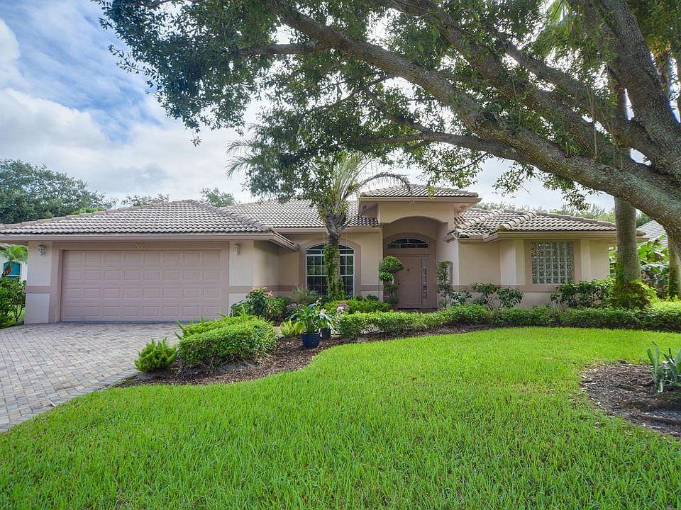 A rare opportunity in the Sanctuary, the premier community of 16 homes in River Bridge. Come see this beautifully maintained home with large mature oak trees on a quiet cul-de-sac! This home features an open floor plan with high ceilings. Master bedroom features 2 walk in closets. The covered screened porch is perfect for relaxing. River Bridge is a beautiful established community with many amenities, close to both Wellington and the 441 corridor and also with easy access to West Palm Beach. You have access to two pools, 6 tennis courts, social activities, shuffleboard a fitness center, club house facilities including a performance stage, etc. and 24 hour guard with roving security.