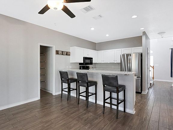 - One Living Area, Separate Dining Room, Eat-in Kitchen, Two Eating Areas, Breakfast Bar, Utility Room Inside, High Ceilings, Master Downstairs, Ceiling Fan(s)