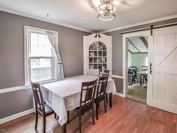 Warm and welcoming Harter Heights colonial with a fully fenced backyard! Charm and character abound in this nicely updated home featuring arched doorways and hardwood flooring that connect the living room and dining room with a corner curio cabinet and crown molding. A sliding barn door reveals a bonus room, the ideal spot for a home office. In the kitchen, you'll appreciate the bright white cabinetry, updated countertops and stainless steel appliances. Upstairs offers three well proportioned bedrooms with hardwood floors and a modern full bath with wainscot paneled walls. The basement includes a semi-finished space perfect for a craft room or home gym plus a laundry with a step-in shower. The attached one car garage provides access to a screened porch in the fully fenced backyard with a shed for outdoor toys and lawn equipment. Noteworthy improvements made this year include a new roof and high efficiency water heater. Conveniently located minutes from downtown Canton, Massillon and