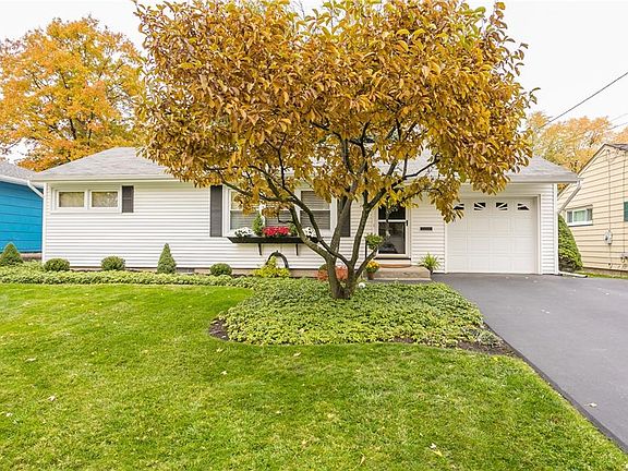 Charming Ranch! You'll love this impeccably maintained 2 bedroom ranch. Updates throughout. Good sized living room, formal dining room w/built-in cabinet, eat-in kitchen w/ lots of cupboard space & tile backsplash, all with Gleaming hardwood floors. Sliding glass door from DR leads to the deck. The beautifully landscaped and treed backyard will amaze you, flowering bushes and perennials abound. Relax and enjoy the view in the three season room. Spacious partially finished basement with full bath, b/i bar, cedar closets and storage. Convenient location, close to shopping, restaurants, Rt 104/Rt 590 and minutes from RGH. Truly move-in condition. STAR $884.