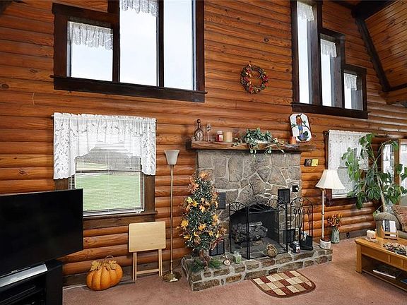 Are you looking for a log home that needs nothing? Then look no further! This home is a true log home with FIRST FLOOR MASTER, large great room with wall of windows and an eat in kitchen too! Upstairs is a HUGE bedroom that used to be 2 bedrooms with a full bath while the lower level has lots of storage, the laundry and a great "man cave" or family room! There's a new porch on the front and a new deck on the back of the house, new roof, new refrigerator, etc...it's ready for you! Large yard, shed and 2 car garage with full second floor storage make this home great for full time living or a weekend retreat as it is just 10 minutes to the resorts and only 2 minutes to the turnpike for commuting! There's even a generator to run the essentials when needed.