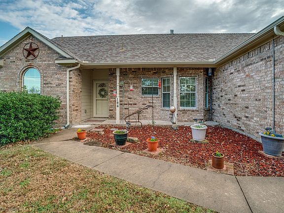 Charming brick homeNew storm shelterCovered front porchSpacious covered back patioPantry for added storageBright eat-in kitchenAttached garage offers convenience