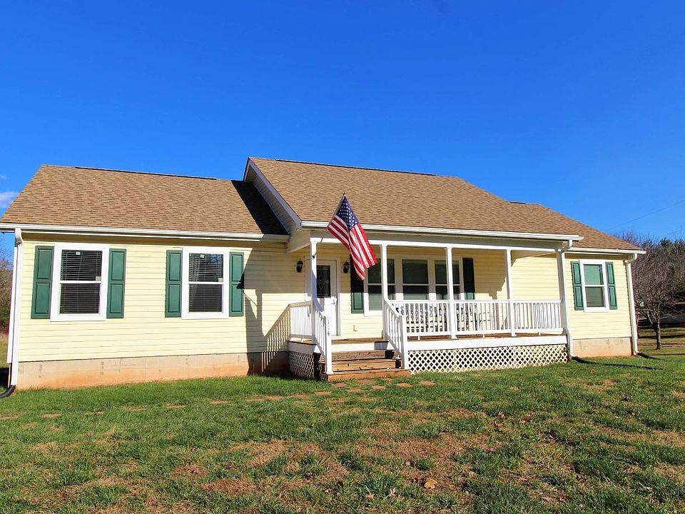 Check out this beautiful saddle-roof ranch home on a full basement located on a perfect 2.5 acre lot right in the town of Rustburg! This OPEN floorplan home features a gorgeous kitchen with an eat at island, lots of cabinet & countertop space and a very nice tile backsplash. The large main bedroom has an incredible bathroom complete with a huge walk in tile shower, double vanity and a garden tub. The home has multiple main level closets for storage and a large utility/laundry area located just off of the kitchen. The basement offers plenty of storage and is perfect for future expansion with a full bathroom rough in already in place. Exterior features a very nice 25' covered front porch, a large flat 2.5 acre lot with all sorts of uses and a Hot-tub overlooking the land out back. 400 amp electrical service already installed for future basement finish or a large outbuilding. Shentel & Comcast high speed internet. Call today to take a look!
