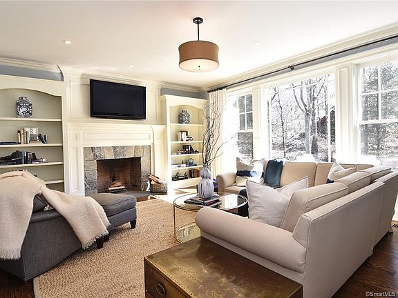 This finest craftsmanship is evident the moment you enter this versatile colonial, sited in the very heart of Westport. Set behind lovely Connecticut stone wall with privacy fence topper sits this sun-filled home with almost 6,000 square feet of finished living space on four levels. Formal and casual entertainment areas abound to will satisfy every family recreation and hobby desire. Located just minutes from all Westport's incredible schools, commuting stations and both highways, this meticulously maintained flexible five bedroom home features a separate home office , great room, and finished walk-out lower level with high ceilings and its own bathroom and fireplace. The third floor study/exercise room offers further bedroom possibilities and is finished plus already plumbed for an additional full bathroom. The white and stainless eat-in kitchen with oversized island is delightful and has abundant storage and dining flexibility. The master suite is highlighted by dual custom walk-in dressing rooms with custom built-ins and a beautiful updated bath with heated floor. Fireplaces are plumbed for future gas. Welcome!