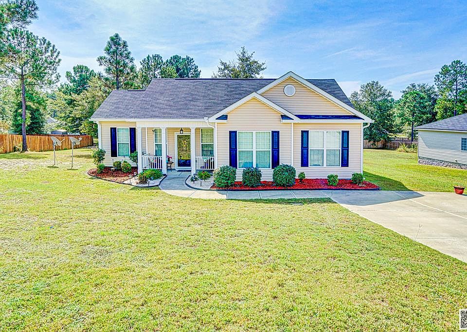 #Peaceful&Serine Come home and relax on the rocking chair front porch (5x7) that over looks the large nicely landscaped front yard. This home has a 20 year 3 tab shingle. Walk into the home where you will find the great room with vaulted ceilings. The kitchen has hardwood flooring, wood look cabinets, stainless steel appliances, and a pantry. Have your morning coffee in the breakfast area that over looks the kitchen and great room. The master bedroom has tray ceilings and a walk in closet. The master bathroom has dual vanity sinks and a shower tub combo. The laundry room has additional cabinet storage. Enjoy the large back yard and relax on the back patio (10x10) that is perfect for grilling out and enjoying nature.