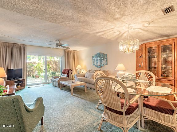 Welcome home to this spacious 2-bedroom, 1-bath condo at Halifax Villas, thoughtfully updated for comfort and peace of mind. Key improvements include a brand-new 100-amp electrical panel (2024), hurricane-rated sliding glass doors (2016), and new ceiling fans in the bedrooms. The unit comfortably sleeps 7 with a new sleeper sofa, a guest room with two beds, and a primary suite offering generous storage. The smart layout maximizes space for everyday living—or excellent vacation rental potential.