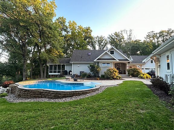Take a look at this stunning custom designed and quality built home. This 3 to 4 bedroom home is situated on 6.7 acres offering incredible country views with a perfect combination of woods, pasture and wildlife. A creek runs through the back yard so throw your pole in and see what you can catch! Enjoy powering your whole home and garages with a 15kw solar system with backup stand-by generator. The two car detached and four car attached heated and cooled garages, will you give you plenty of room for all of your vehicles and toys. Bonus room above the garage for an extra hang out space or office. In the summer enjoy your heated swimming pool and plenty of yard for fun. Step inside this Energy efficient home to discover the many extras including two fireplaces, (gas and wood), spacious screened porch with vaulted ceiling, custom built cabinets in dining room and master closet, central sound system, twin tank water softener, iron curtain system, and tankless water heater.