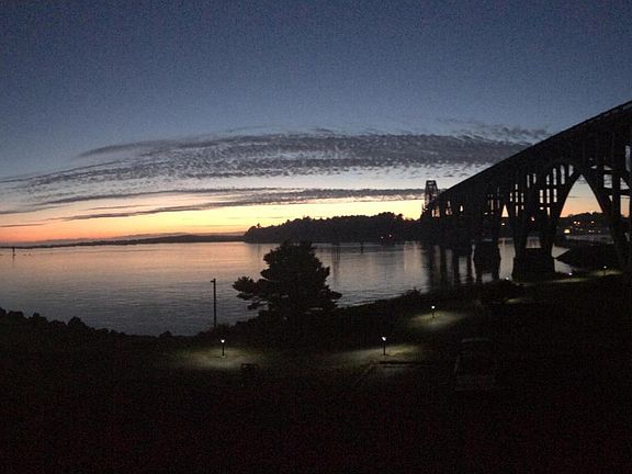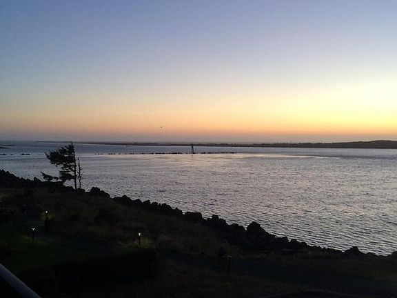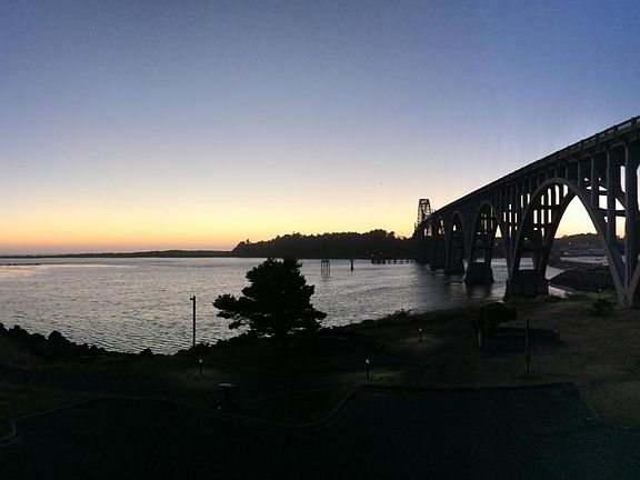 ONE LEVEL BAYFRONT LUXURY CONDO! Awesome bay, bridge & ocean views. Heated tile & wood floors, Granite counters & SS appliances, protected view deck with glass rails. Fireplace, 9 ft. ceilings, Attached large garage and covered parking. Vacation rental approved. Walking/bike trails, next door to rogue brewery/pier. Travertine/glass shower and large Jacuzzi tub. ICF construction. Private & quiet.